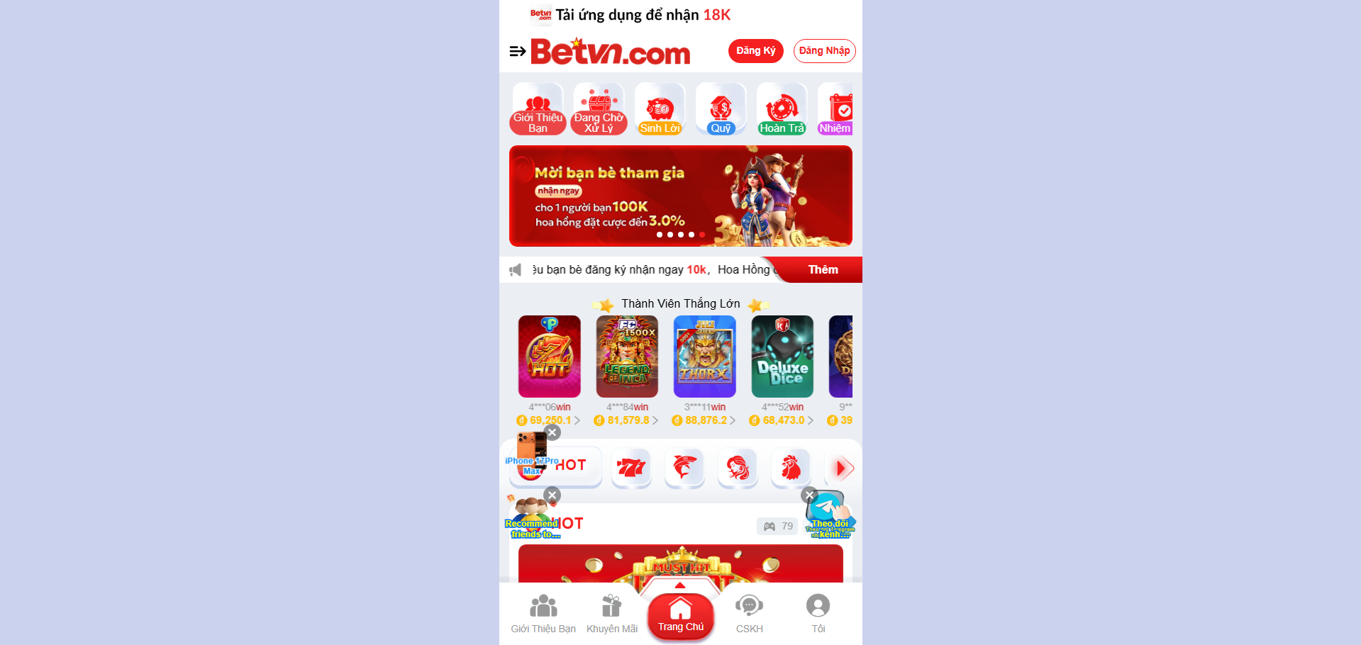 Chương trình khuyến mãi hàng ngày, hàng tuần và hàng tháng. Giá trị lên tới 28.000.000, nạp đầu tặng 100%, hoàn trả tới 3%.